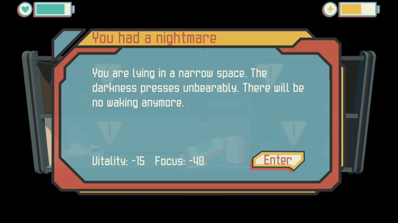 You’re a solo traveler, isolated aboard a small spacecraft en route to a distant colony. Systems are failing. Logs are fragmented. Your task is to keep the ship functional until arrival.